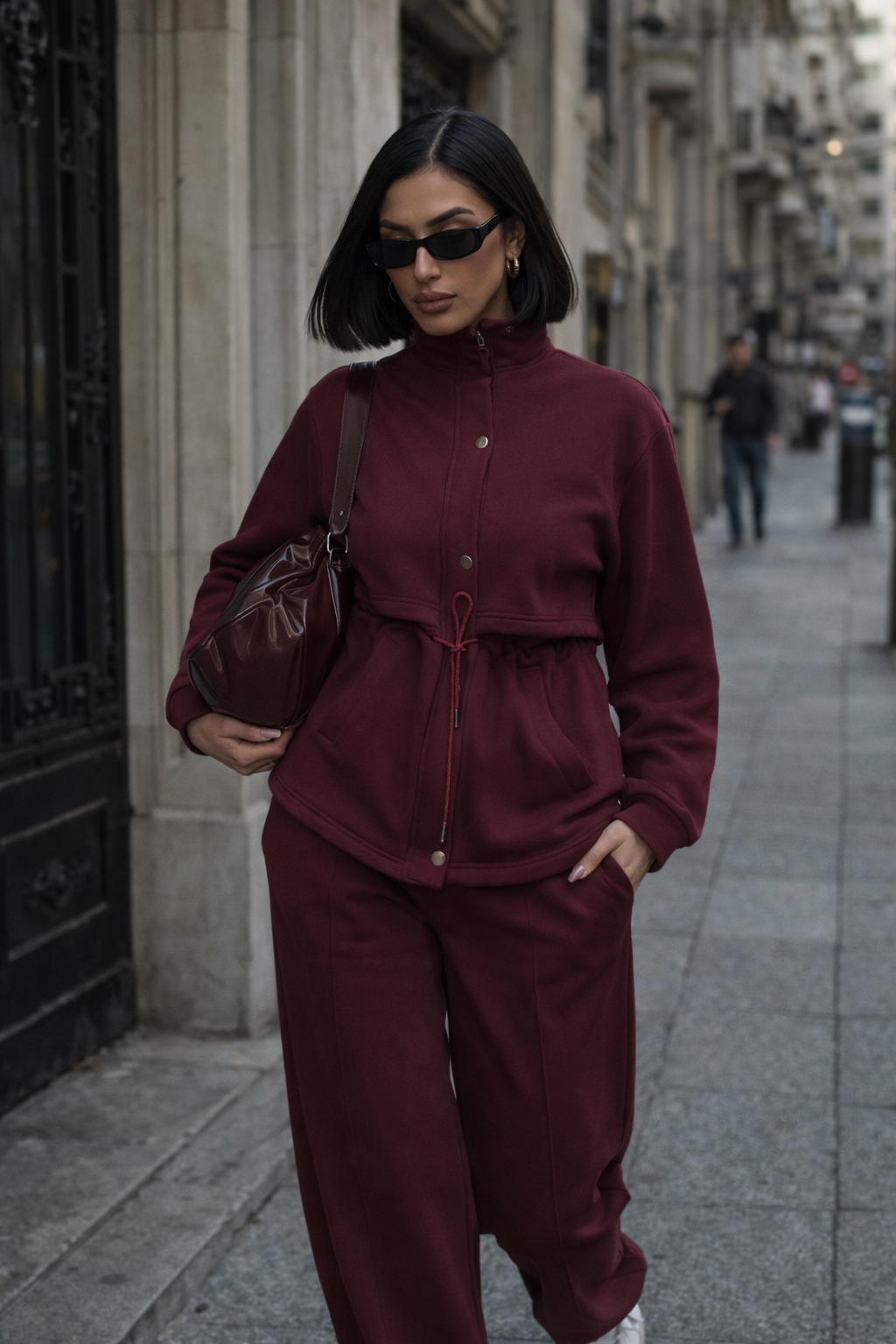 Finished in a deep burgundy shade, The Vino Lounge Set strikes the perfect balance between cozy and refined—made to be styled up, worn out, or lived in.